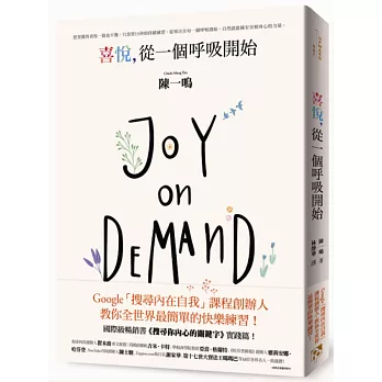 這是一本關於喜悅中的喜悅,以及如何獲得喜悅的精采入門書。享有Google「開心一哥」美譽的陳一鳴,透過他自己的禪修經驗與科學研究結果,發現喜悅的深奧與珍貴的價值,帶領讀者踏上喜悅的開悟之路。他應該知道,他是一個工程師,而且是非常有趣那種。我很愛讀這本書,全書充滿令人會心的微笑、問答、漫畫、故事,以及大量的科學研究,內容非常豐富,《喜悅,從一個呼吸開始》是一座心靈與智慧的寶庫!──「烏帕亞禪修中心」住持/喬安?哈利法斯博士