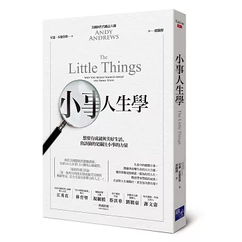 他在書中多次舉例證明,事情成功的訣竅就是專注於增加自身價值的小事上面。只要對周遭的小事敞開自己的心思與精神,每一件小事都將成為前往大局的跳板!
