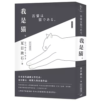 《我是貓》是夏目漱石最著名的長篇小說,同時也是讓他從此聲名大噪的一部處女作。小說中的用語有趣又嘲諷,滿是挖苦的對話尖銳又犀利。夏目漱石透過一隻沒有名字的貓嘲弄世人,同時也點出了不少身為人而跳脫不出的盲點,獨到而富饒幽默的批判文風,讓本作品至今仍是日本近代諷刺文學的代表之一,更是必讀的日本經典文學。